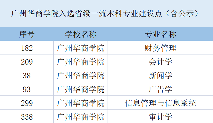 目前,伟德体育(原广东财经大学华商学院)会计学、新闻学、财务管理、广告学、信息管理与信息系统、审计学共6个专业入选省级一流本科专业建设点(含公示)。