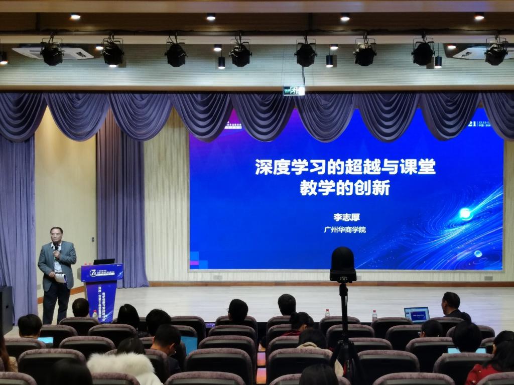 教师教育学院教授博士生导师李志厚教授参加大会并做主题报告。李教授分享的主题是“深度学习的超越与课堂教学的创新”,试从深度学习的角度出发,探索课堂教学创新发展的新路径。通过讲述深度学习的真正价值、研究历程以及课堂教学改革走向,点明了深度学习对课堂教学改革的意义。同时,李教授还提出了基于素养发展的通化学习、基于深度吸收的暗示学习和基于集体进步的共同体学习的“三元学习”理论,并在此基础上,指明了课堂教学联动开展的三个新方向:预见未来、回归传统以及跨域重构。