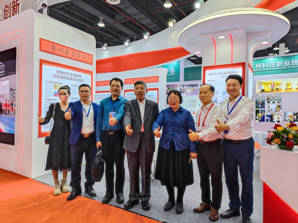 我校应邀参加此次教育博览会,由执行校长郭银华带队,学校相关职能部门一行人出席了本次开幕式和博览会。中国民办教育协会名誉会长李连宁、广东省民办教育协会会长赵康等领导一行来到我校展位,充分肯定了我校近几年的发展成绩以及所取得的成果成效。我校陪同人员向领导、嘉宾们介绍我校展出的学校党建工作、思想政治工作、教育科研工作、国际化办学、创新创业、招生就业等方面的办学成效,并与展会领导、同行专家等进行深入交流。展会现场氛围浓厚热烈。