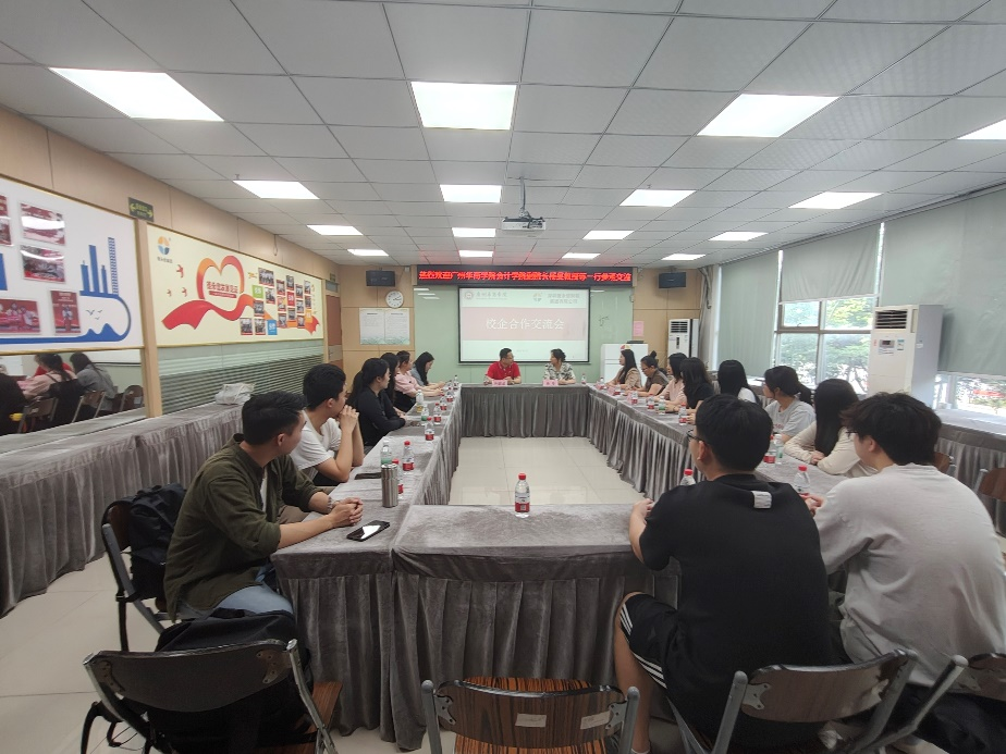 为进一步加强校企合作,深入了解学生实习与就业情况,推动产教融合向纵深发展,4月22日下午,会计学院副院长杨旻教授、税务系主任李志凤副教授、税务系副主任雷雨老师及会计学院张翠凤教授、朱小云副教授和丘晓琳玲老师一行前往深圳德永信财税集团参观交流,并亲切看望慰问了会计学院大四实习生及毕业后就职于该集团的校友们。德永信财税集团总经理冼朝卓先生、人事经理袁春先生热情接待了杨旻副院长一行。