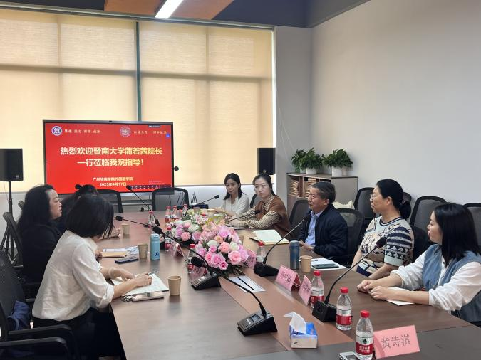 2025年4月17日,暨南大学外国语学院与伟德体育外国语学院合作交流会在创新楼403-2会议室举行。暨南大学外语学院蒲若茜院长、汤琼副院长、以及华文教育编辑室姚晓莉主任,与外国语学院特聘教授肖坤学、英语系杨润秀主任等代表齐聚一堂,共商两院在学科建设、人才培养与教材编写等方面的合作事宜。