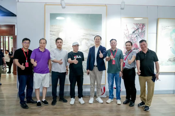 (领导及嘉宾在画展现场合影留念)