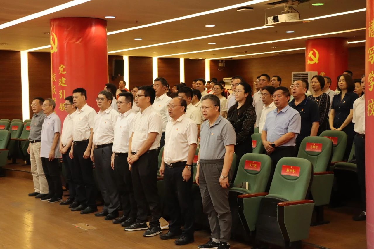 为热烈庆祝中国共产党成立104周年,扎实推进深入贯彻中央八项规定精神学习教育,以高质量党建推动学校事业高质量发展,7月1日下午,我校在广州校区中央图书馆学术报告厅隆重召开庆祝中国共产党成立104周年暨“两优一先”表彰大会。同时启动我校智慧党建系统,为学校迎接本科教学工作合格评估、筹备二十周年校庆注入强劲动力。学校领导、党委委员、校长助理、二级学院党政负责人、职能部门负责人等二百余名代表齐聚一堂。会议由学校党委副书记、副校长焦方太主持。
