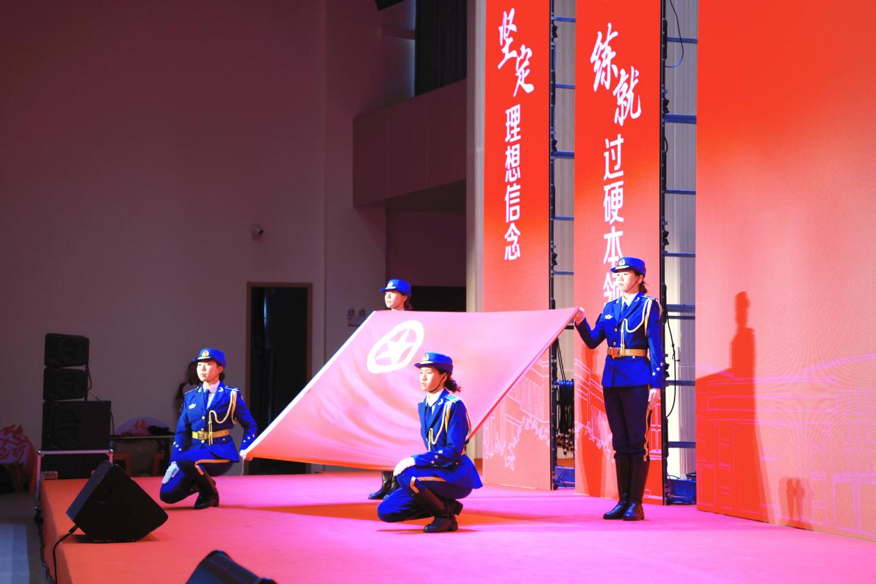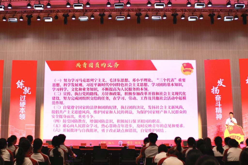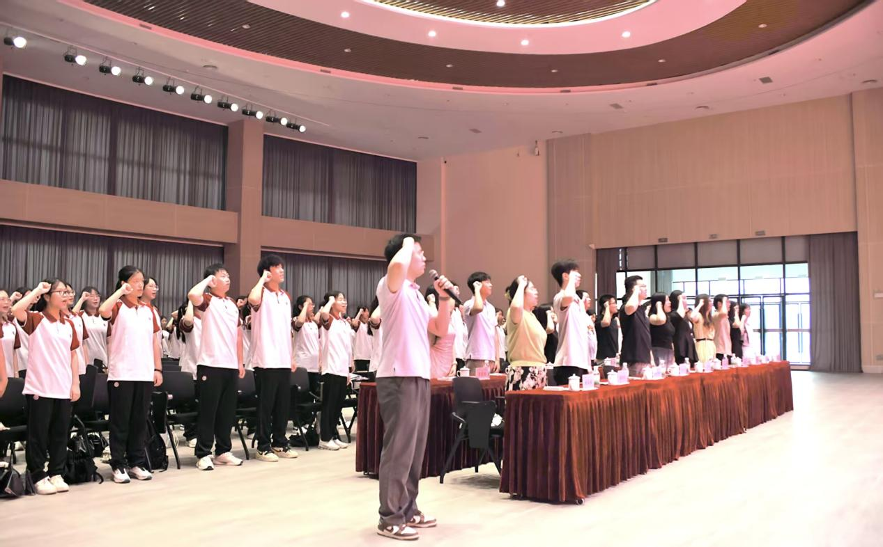 校团委杨伟捷老师带领新团员们进行入团宣誓。