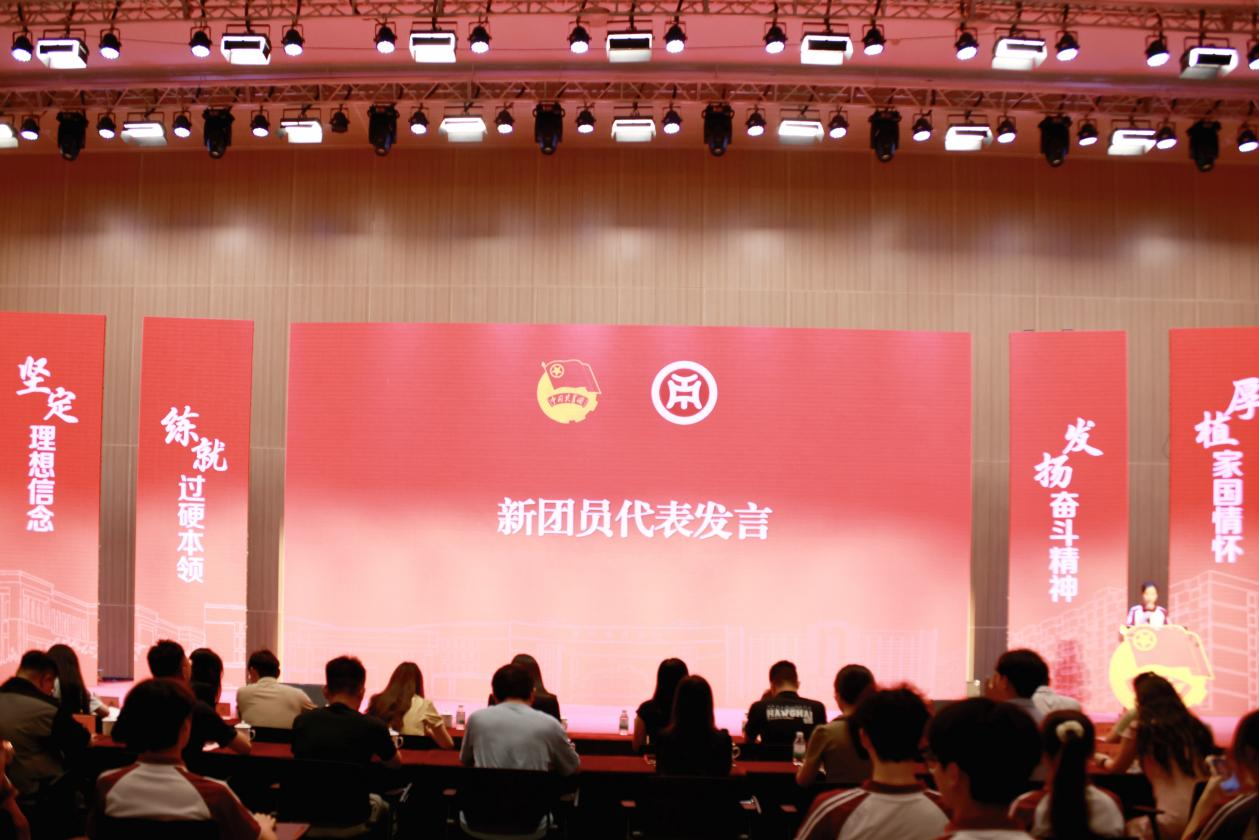 新团员代表数字传播学院24级播音与主持艺术1班吴敏琦同学发言。吴同学代表全体新团员向学校党委、团委一直以来的关心和培养表示感谢,并向全体新团员发出三点倡议:一、坚定信仰,做理想远大的追光者。深入学习党的理论知识,牢记使命;二、修身立德,做文明风尚的建设者。主动参与校园文明建设和社会公益活动,用行动传递正能量;三、勇于担当,做砥砺奋斗的开拓者。以“功成不必在我,功成必定有我”的担当,在奋斗中释放青春激情,追求青春梦想。