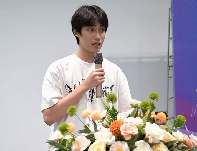 运动员林嘉智代表所有参赛运动员宣誓,他坚定承诺:全体参赛选手将严格遵守比赛规则,尊重裁判、尊重对手,以积极、健康、向上的态度参与比赛,用汗水和拼搏诠释体育精神,在赛场上展现出最佳的竞技状态,做到胜不骄、败不馁,为班级和学院争光。