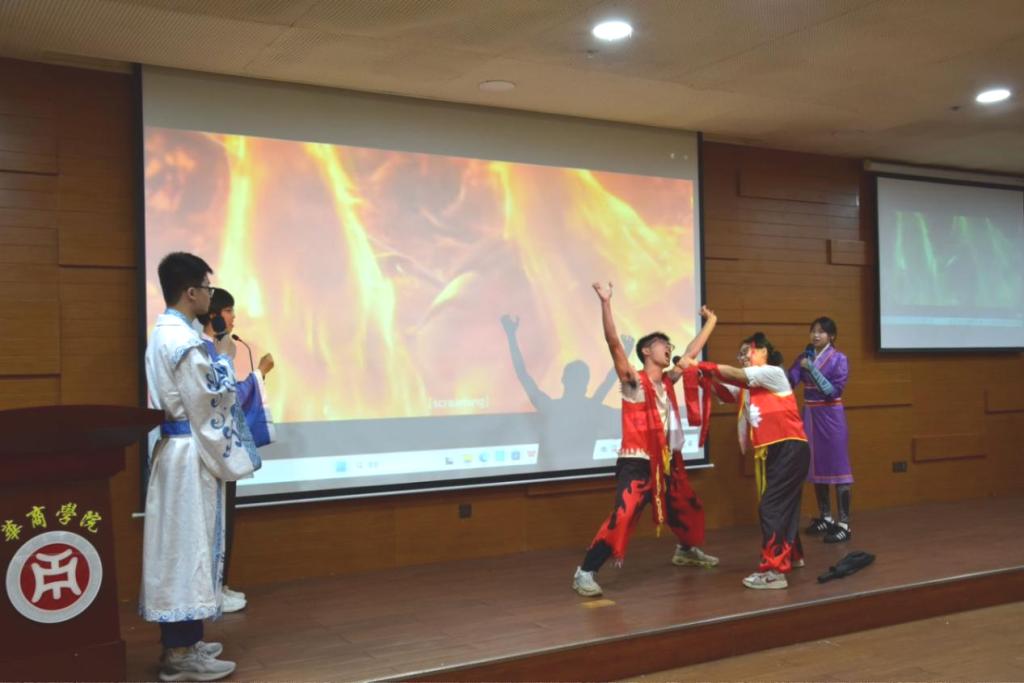 来自国际学院、健康医学院、人工智能学院的“Dynamic队”团队凭借纯正的英式发音和富有感染力的表演,将哪吒“我命由我不由天”的经典台词诠释得淋漓尽致;国际学院的“Dubbing knight”组合则通过默契的配合和生动的肢体语言,完美再现了哪吒与哪吒母亲的精彩对戏。选手们不仅展现了扎实的英语功底,更通过创新的艺术表达,让这一传统神话人物焕发出新的时代光彩。现场中外师生完全沉浸在精彩的表演中,每当选手完成配音,观众席都会爆发出热烈的掌声。