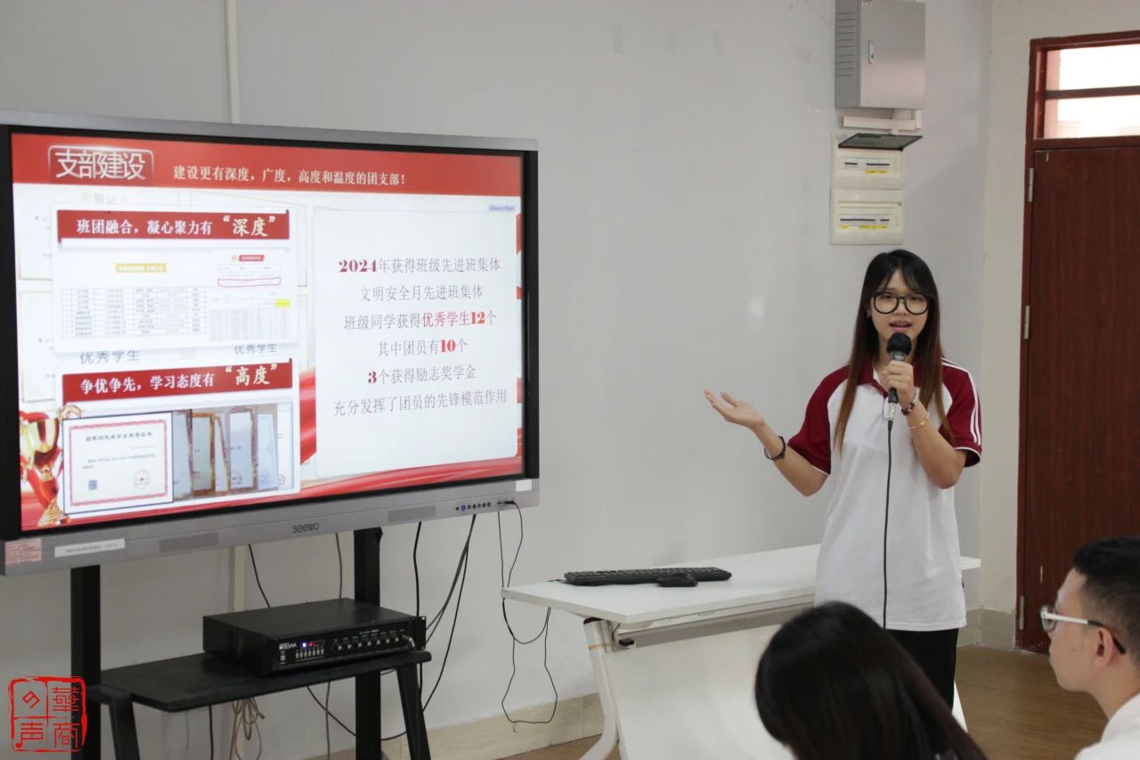 22级新闻学3班团支部等10个团支部代表依次答辩。各团支部负责人从思想引领、组织生活、学风建设、社会实践、团组织生活等维度切入,通过PPT生动呈现团支部过去一年的建设成果。汇报中,他们展示了常态化开展的主题团日活动,分享在志愿服务、学科竞赛中的亮眼表现,充分展现出团支部积极向上的精神风貌与强大的凝聚力。各团支部代表还围绕加强团员思想教育、创新活动形式、提升服务能力等方面提出规划,立志进一步发挥团支部的战斗堡垒作用,团结带领团员青年在新时代展现青春担当。