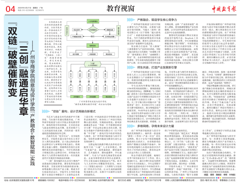 2025年4月27日,我校创意与设计学院的“产教融合+数智赋能”实践报告,在“学习强国”“中国教育报”“中华网”进行报道。