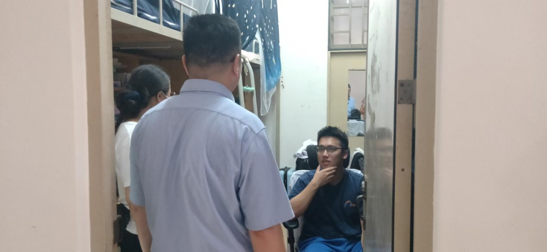 安全无小事,责任重于山。在走访过程中,老师们对宿舍硬件设施进行了全面细致的排查。针对高层窗户未限位存在高空坠物风险、楼道管道被用作晾衣区等安全隐患,黄伟新校长助理带领大家逐一登记造册,并当场对学生进行安全教育。他强调,安全是学习和生活的基础,每一位同学都要提高安全意识,杜绝一切安全隐患。老师们还向同学们普及了消防安全、用电安全等知识,提醒大家要严格遵守宿舍管理规定,共同维护宿舍安全。