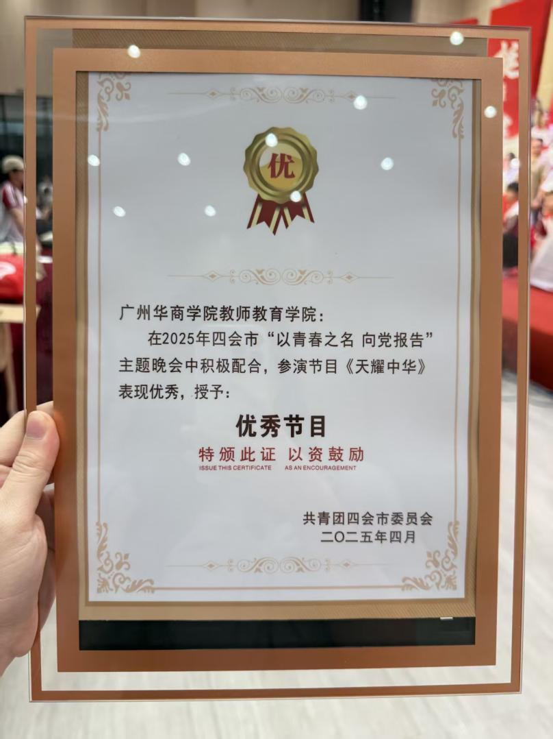 4月27日晚上,由共青团四会市委员会主办,伟德体育协办的“2025年四会市‘以青春之名 向党报告’主题晚会”在伟德体育肇庆校区成功举办。教师教育学院第二课堂合唱团在晚会上演唱歌曲《天耀中华》,激发了广大师生的爱国热情,丰富了校园文化生活。