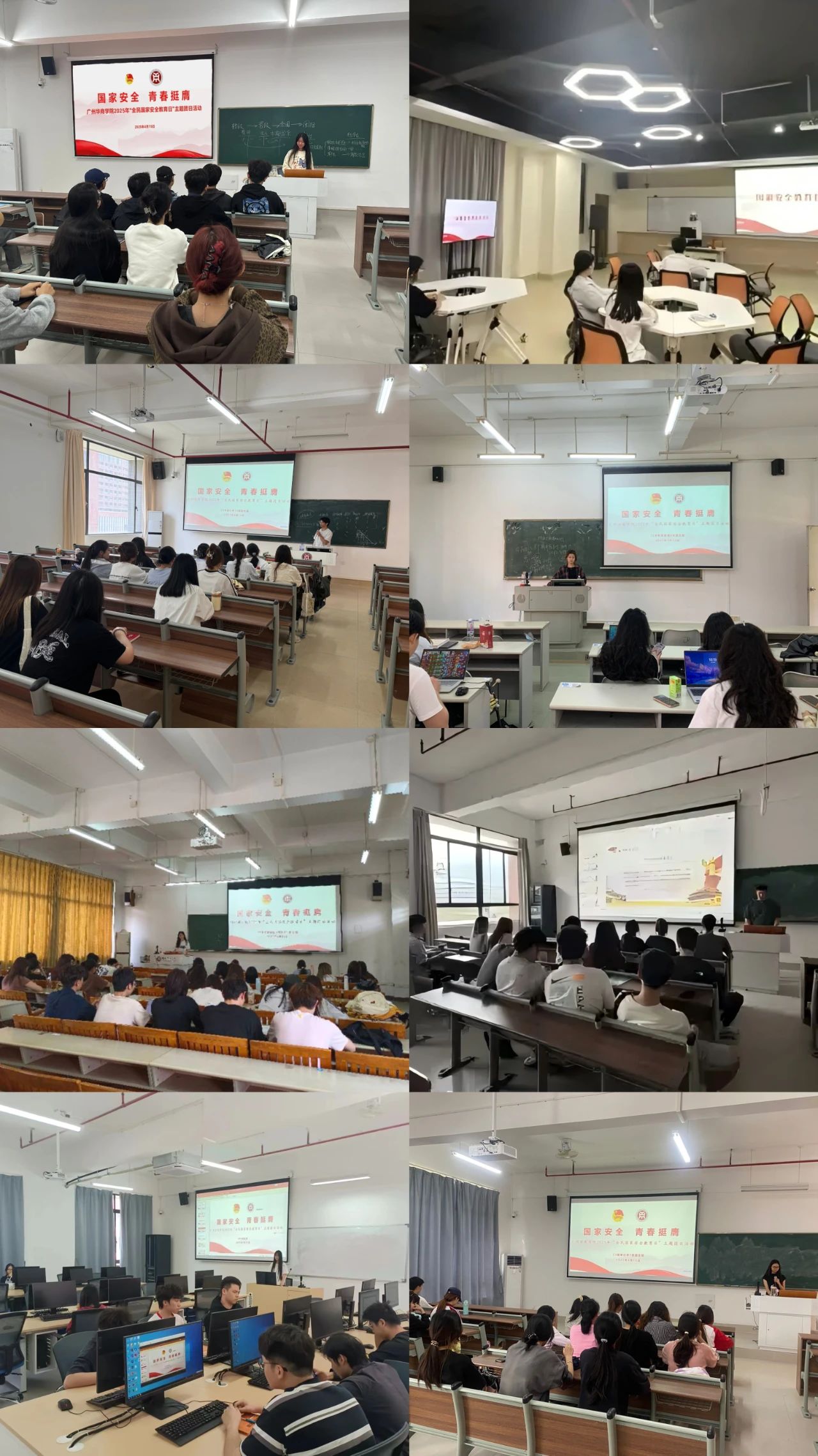 学校在广州校区中央图书馆大厅、肇庆校区6号楼一楼大厅同步设置国家安全主题展区,通过图文展板、宣传手册等形式,向师生普及国家安全知识。