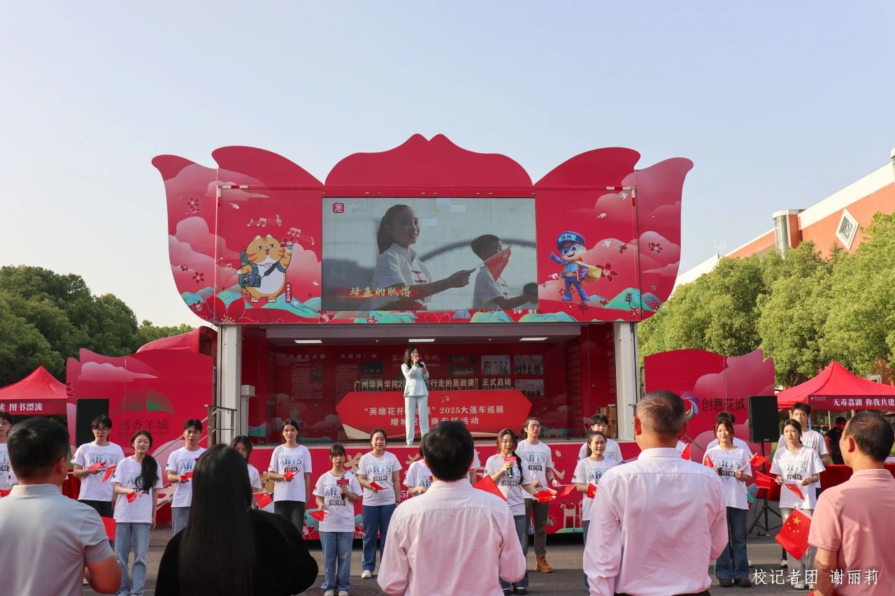 为深入学习贯彻习近平新时代中国特色社会主义思想,持续深化和传承红色基因。4月16日,“英雄花开英雄城”2025大篷车巡展增城区专场活动暨2025年伟德体育“行走的思政课”启动仪式在“创百年名校,育华夏英才”地标广场举行。活动以“红色文化+实践育人”为核心,通过沉浸式宣讲、互动体验、仪式教育等创新形式,为全校师生打造了一堂“走新”更“走心”的大思政课。本次启动仪式采用“线上+线下”的方式进行,同步辐射数万名师生。