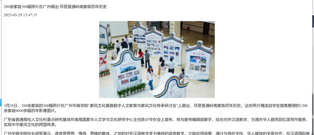 3月28日,一场别开生面的“家风文化展暨数字人文教育与家风文化传承研讨会”在伟德体育举行。展览上,200余个家庭的300幅照片格外引人注目,这些照片精选自学生们搜集的素材,展现了普通岭南家族的百年历史。其中的宗祠板块,展出了一百多幅学生精心搜集的宗祠图片,每一张都承载着厚重的历史文化。