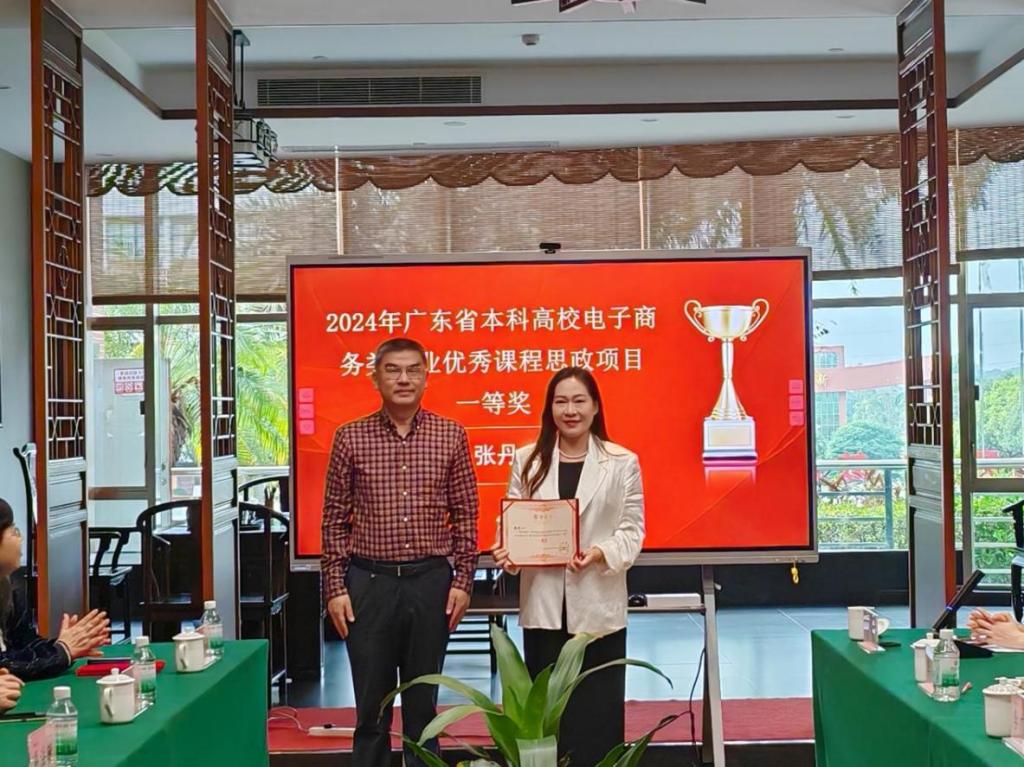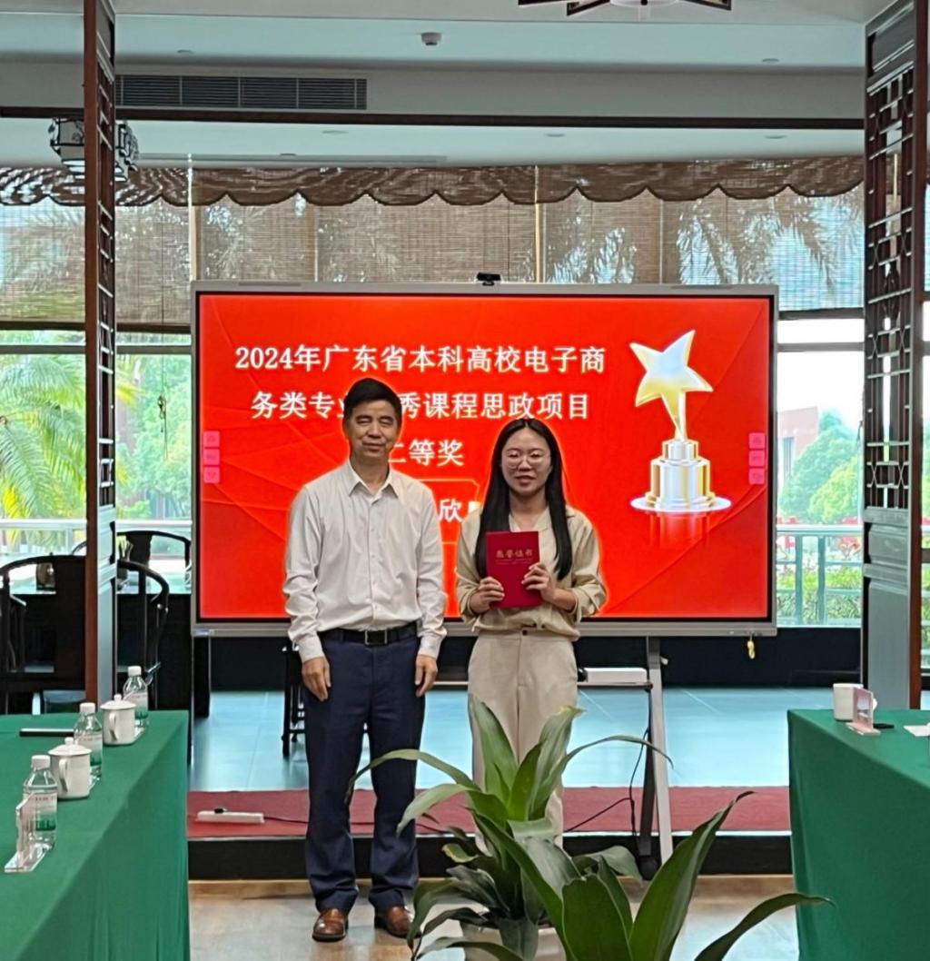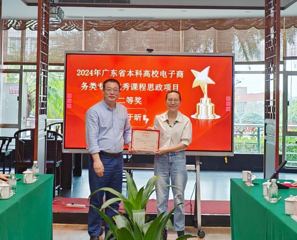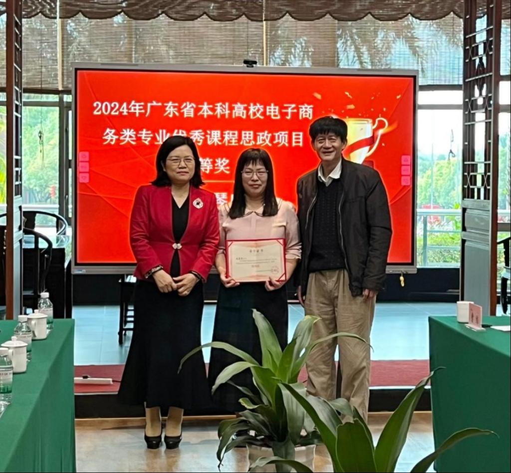 2025年3月13日,广东省本科高校电子商务类专业教学指导委员会主任委员邓顺国教授、省电商教指委副主任委员秘书长易法敏教授、省电商教指委副主任委员贺敏伟教授、省电商教指委副主任委员黄丽娟教授、省电商教指委副主任委员王和勇教授、广州经纬国际控股集团有限公司董事长李育海等专家莅临我校,为在2024年电子商务类优秀思政课程评选中获奖的七位教师举行颁奖仪式。伟德体育党委书记陈玉欢、伟德国际betvlctor院长李广明、副院长李伟、院长助理赵慧琴等领导出席了本次仪式。
