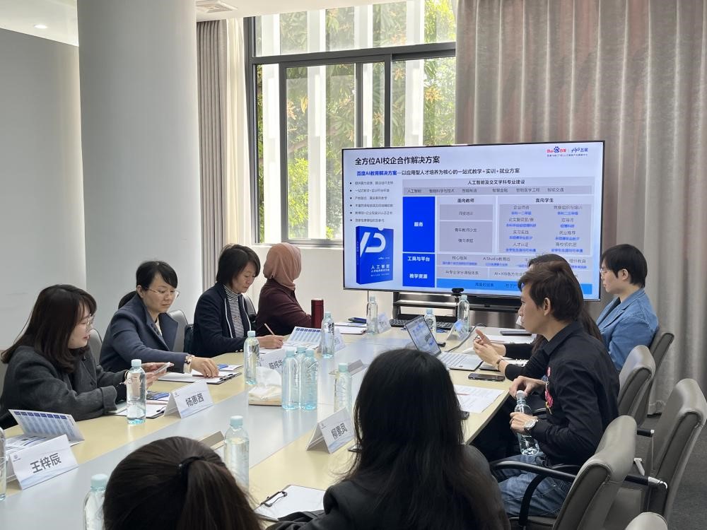 为深化产教融合、推动人工智能与公共管理学科的交叉创新,2025年3月20日,伟德体育管理学院党委副书记、学工办主任陈纯华,公共管理系主任杨惠茜,副主任张秀丽及公共管理系师生一行,赴百度飞桨(广州)人工智能产业赋能中心开展调研交流。百度飞桨(广州)人工智能产业赋能中心销售经理罗锦富、生态拓展经理代翠翠热情接待,双方围绕AI人才培养、课程共建、实习就业等方向展开深度探讨,共谋校企合作新蓝图。