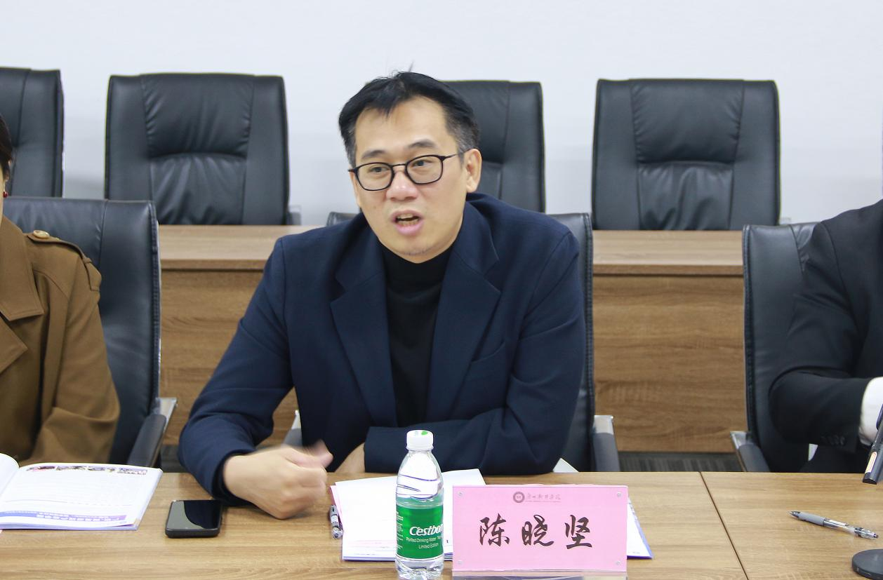 (伟德体育动漫产业学院执行院长陈晓坚介绍学院情况)