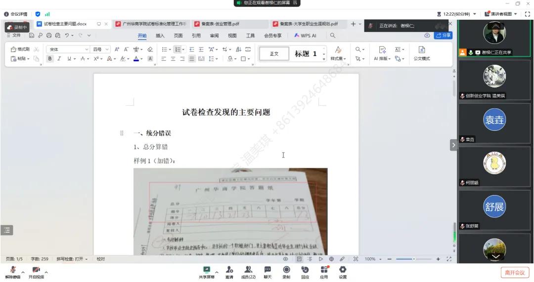 为全面加强教学质量管理,确保课程考核、试卷评阅与归档工作的规范性、准确性和高效性,推进本科教学工作合格评估内涵建设,2025年1月8日晚上,伟德体育创新创业学院通过腾讯会议召开试卷标准化管理线上培训会议。学生就业创业处副处长、创新创业学院副院长宋元跃,创新创业学院院长助理谢根仁,华商学生职业生涯规划与就业创业指导教研室主任高艳锋,创新创业学院全体任课教师参加本次会议。