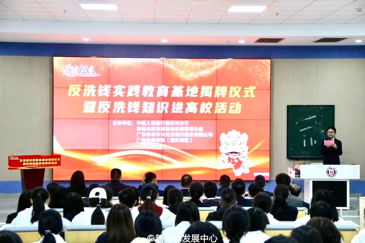 为提升我校师生对反洗钱知识的了解,提升防范金融风险的能力,推进平安校园建设,深化校地共建共享,为青年大学生搭建更加广阔的平台,以奋进姿态迎接本科教学工作合格评估。12月12日,在学校党委的领导下,我校团委联合中国人民银行肇庆市分行、四会营业管理部、四会市监察委员会,四会市公安局、四会市人民检察院、四会市人民法院、四会农商银行在肇庆校区8号楼108共同举办反洗钱实践教育基地揭牌仪式暨反洗钱知识进高校活动。