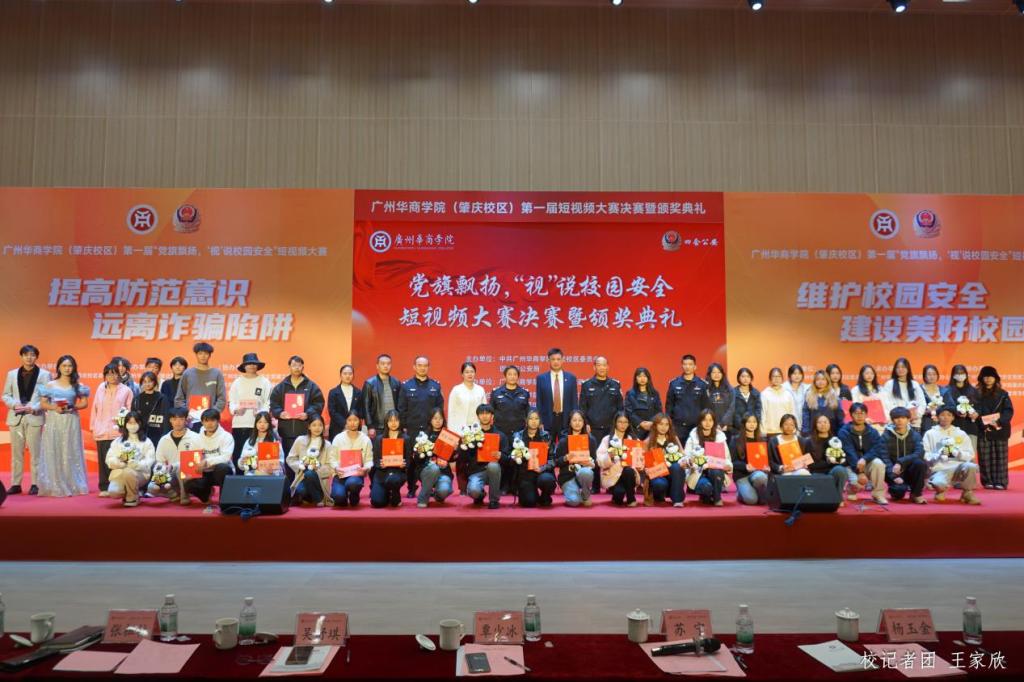 12月19日下午,伟德体育(肇庆校区)第一届“党旗飘扬‘视’说校园安全”短视频大赛决赛暨颁奖典礼在1号楼报告厅圆满落下帷幕。伟德体育肇庆校区党委书记苏宁,党委副书记、管委会常务副主任覃少冰,四会市公安局党委委员、政工室主任杨玉金,四会市禁毒办副主任、禁毒大队教导员吴舒琪,四会市公安局新江派出所副所长张祖柱及相关单位代表出席了本次活动。