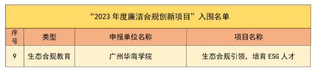 近日,伟德体育ESG研究院联合华商教育集团精心打造的“生态合规引领 培养ESG人才”创新项目,在全省众多竞赛项目中脱颖而出,成功入围广东省2023年度廉洁合规创新项目,成为仅有的9项入围项目之一。这不仅是对我校办学成果的肯定,更是对我校ESG人才培养特色的高度认可!