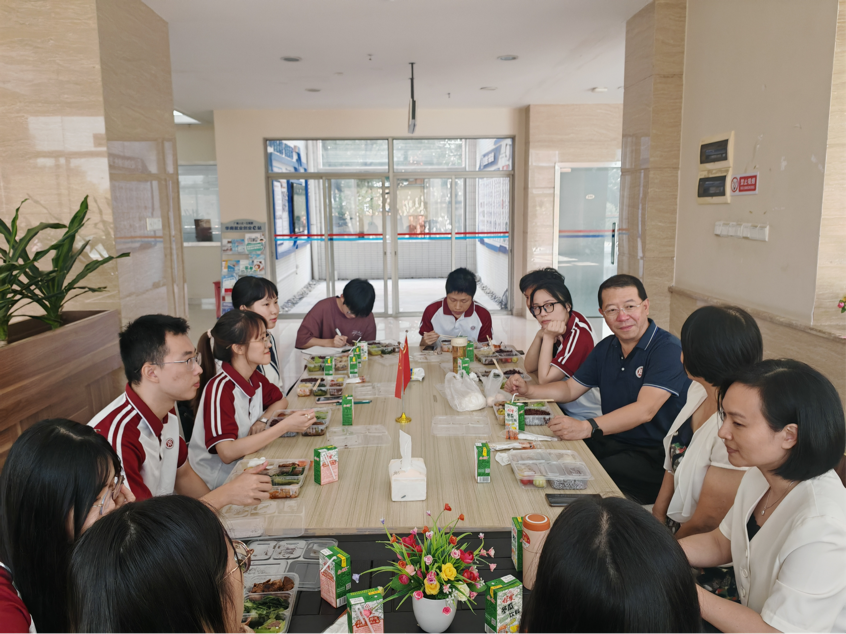 2024年10月15日中午,校领导与学生代表午餐座谈会在行政楼一楼一站式服务大厅成功举办。学校党委书记陈玉欢、副校长吕峻闽、学校顾问王锦秀、后勤保卫处处长杨燕平以及一站式服务大厅工作人员与学生代表们共进午餐。此次午餐会旨在通过轻松愉快的用餐氛围,深入了解同学们的专业学习、生活状况及实际需求,共同为学校的发展与学生的成长贡献力量。