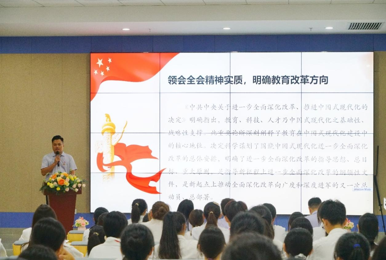 江庆基老师通过深入剖析全会精神实质、教育改革方向、素质教育强化策略、全面发展人才培育要点以及推进中国式现代化内涵,使同学们理解教育与全面深化改革的关键意义,进而积极响应全会号召,切实践行新时代青年的使命担当。