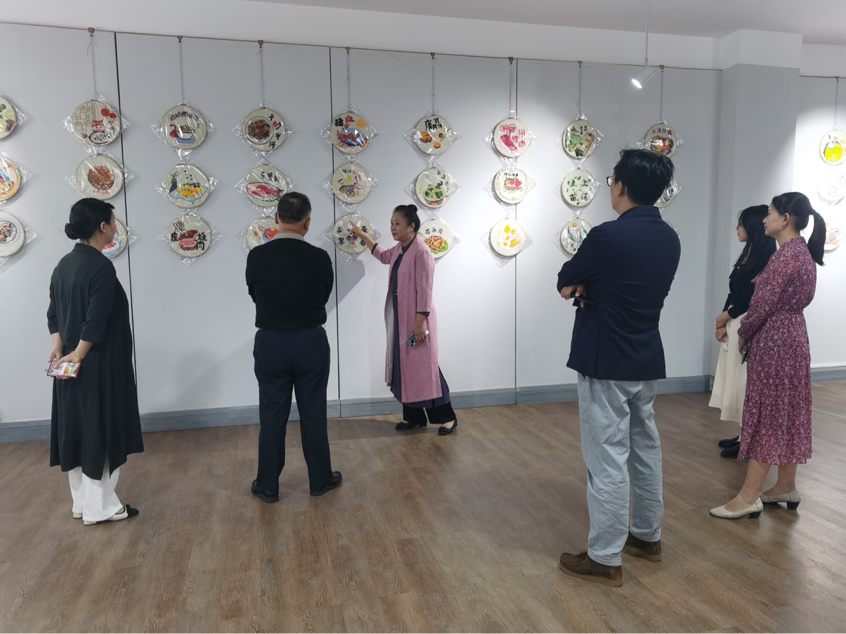 当日下午,牟辽川书记一行首先参观了创意与设计学院近期举办中国刺绣艺术三育展览。展览现场,一幅幅精美的刺绣作品琳琅满目,针法细腻、色彩丰富,充分展示了中国刺绣艺术的独特魅力和深厚底蕴。参观过程中,文化馆领导对展览的策划和组织给予了高度评价,认为展览不仅展现了刺绣艺术的精湛技艺,还通过“三全育人”(即全员育人、全程育人、全方位育人)的融合,为传承和弘扬中华优秀传统文化注入了新的活力。