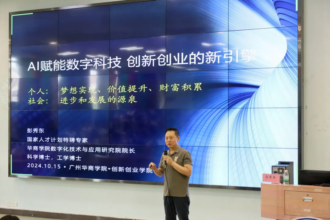 本次讲座的主讲人是国家级人才计划特聘专家、华商数字化技术与应用研究院院长彭秀东教授。莅临本次讲座的嘉宾有伟德体育学生就业创业处宋元跃副处长、创新创业学院陈欢老师。