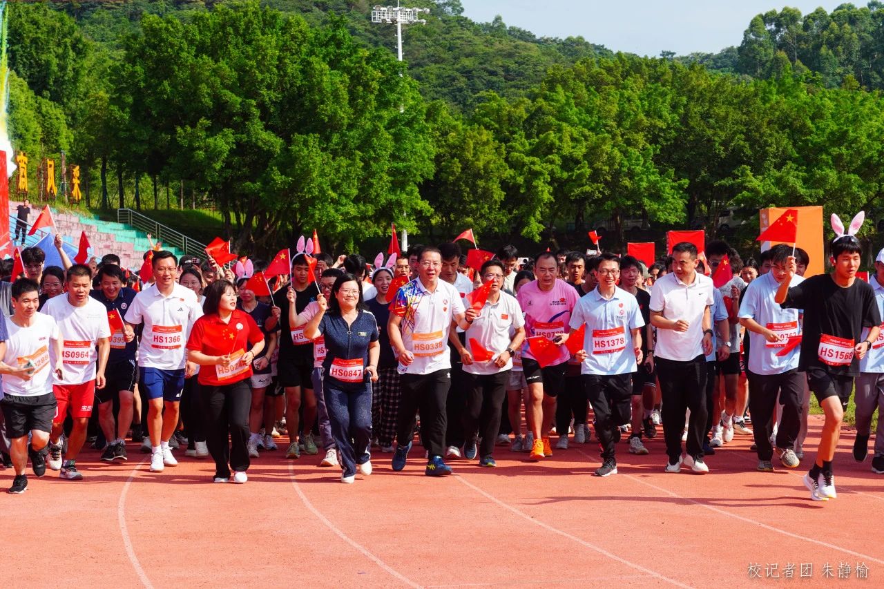 金秋如诗,校园如画,华商校园充满着喜迎国庆的氛围。9月28日上午,伟德体育在广州、肇庆双校区田径场同步开展以“青春起跑线 启航在华商”为主题的迎国庆暨2024新学年开学健康跑活动。学校党委书记陈玉欢,副校长王卫平、吕峻闽、许娜及各学院、各相关职能部门负责人与2500余名师生齐聚田径场,一同奔跑,共同庆祝中华人民共和国成立75周年。