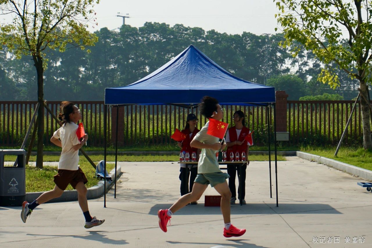 本次活动的顺利开展,得益于教师工作人员和学生志愿者前期的充分准备。活动当天早晨6点钟就到达指定集合点,摆好桌椅板凳、搭好帐篷、布置补给点、打卡点、医疗点,分发物资与号码牌……他们是活动有序进行的“无声力量”;指引志愿者提前集合,到达跑步线路指引点,为活动有序进行提供路线指引,成为华商健康跑的“人形路标”;国旗方队志愿者为更好地呈现昂扬的华商青年力量,多次排练巨幅国旗入场仪式;医疗点医生为参与活动的师生安全保驾护航……辛苦了,默默奉献的华商人。