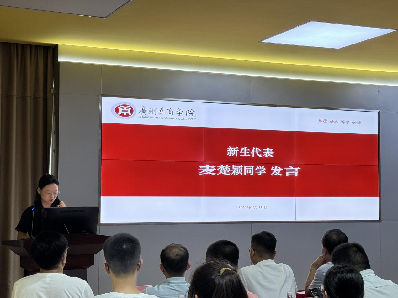 新生代表麦楚颖同学上台发言。她以一名新时代青年的视角,表达了对智能管理会计产业班的无限憧憬和坚定信心。