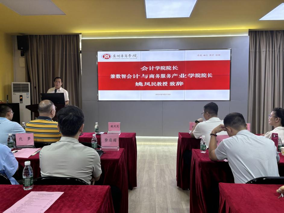 2024年9月13日,伟德体育会计学(智能管理会计产业班)2024级校企联合培养产教融合启动会在会计学院会议厅举行,与会计学院产业学院联合培养人才的用友新道科技股份有限公司、广州恒惟信科技集团有限公司、金蝶精一科技服务有限公司、广东翰智数字科技有限公司、零禾一智能(深圳)有限公司、湛江市明灯文化科技有限公司的企业代表,学校教务处副处长黄静萍老师、会计学院院领导、产业学院院领导等出席典礼。典礼由会计学院副院长周书域老师主持。