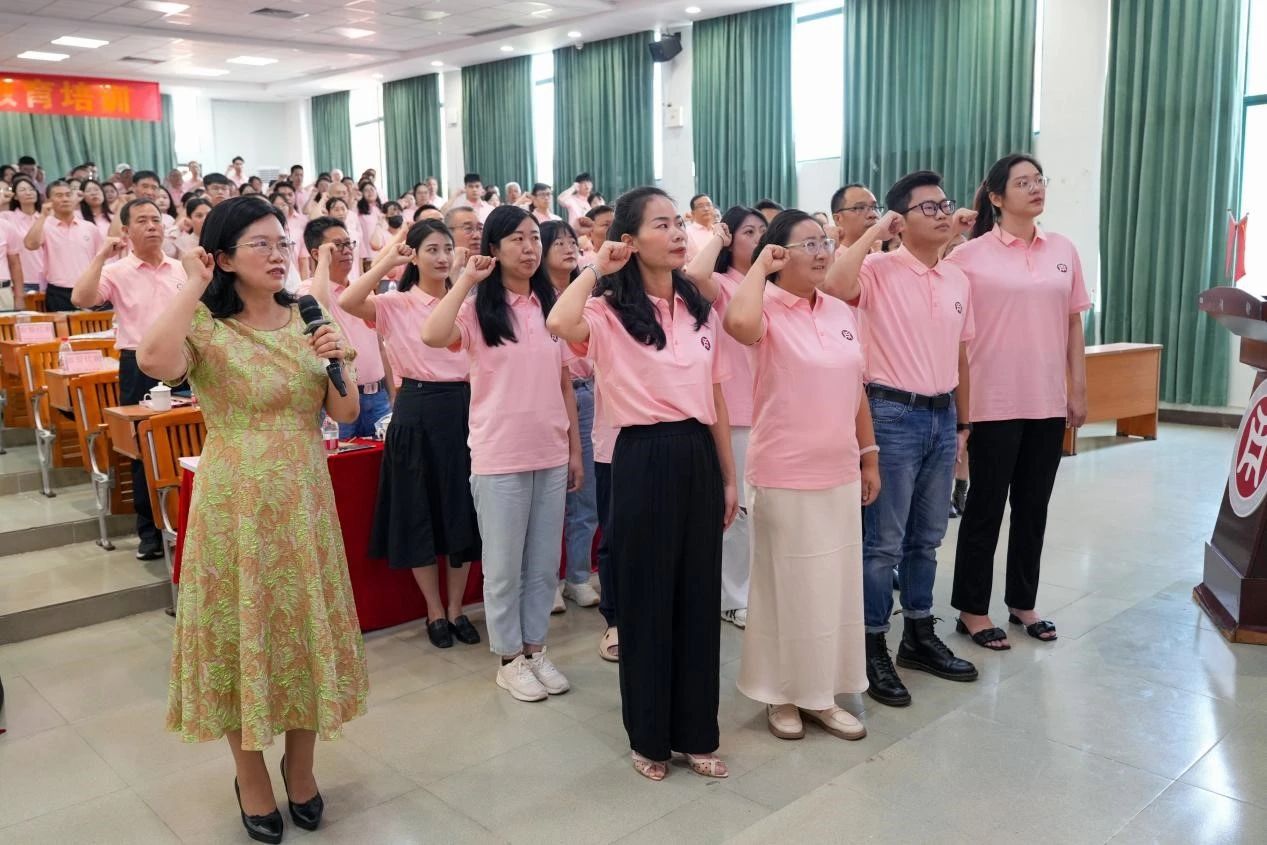 伟德体育2024年新教师入职教育第一场集中培训在庄严的国歌声中拉开序幕。党委书记陈玉欢代表学校对新教师表示热烈的欢迎和衷心的祝福。她表示,新入职教师是华商的新鲜血液,是学校朝气蓬勃精神面貌的体现,希望新教师能尽快转变角色、快速成长。会上,全体新教师在党委书记陈玉欢的带领下,进行庄严的入职宣誓仪式。坚定有力的誓词回荡在报告厅内,新教职工必将秉承“厚德、励志、博学、创新”的校训,做学生良师益友,铸教师高尚人格,为全体学生美好未来、华商学院教育发展而不懈努力。