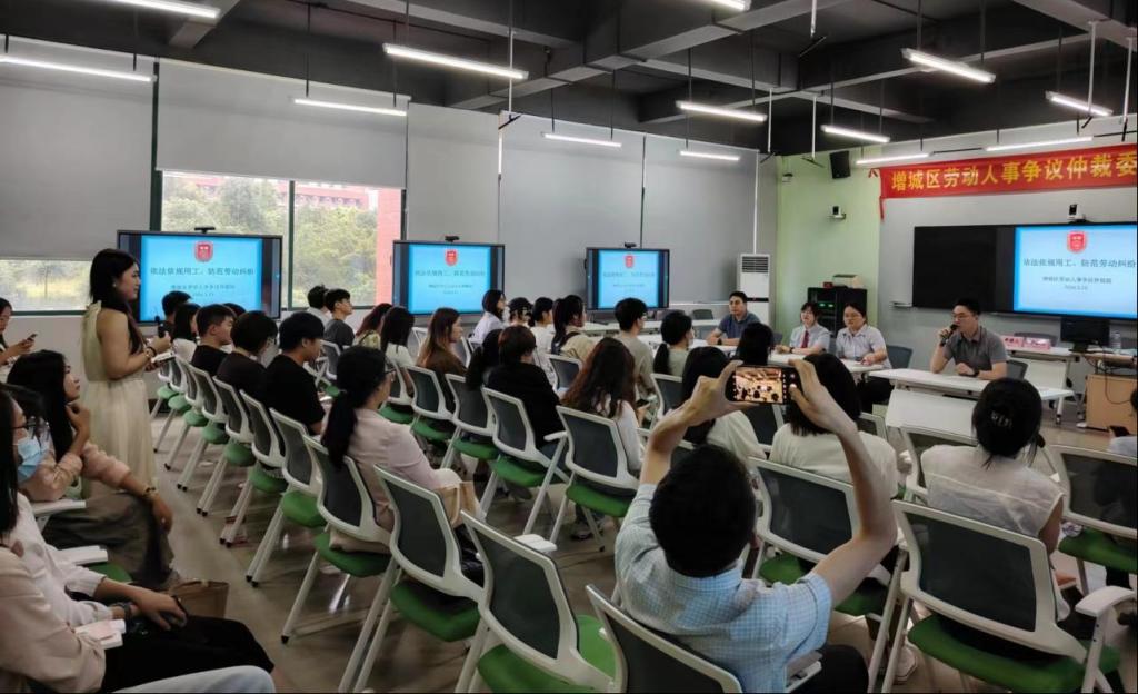 现场观摩人员就劳动人事争议问题向区人社局劳动人事争议仲裁院领导及当庭仲裁员进行了讨教学习。无论是企业实践问题,还是劳动法相关课堂教学问题,亦或是学生对于劳动仲裁具体工作好奇问题,嘉宾们均给予了较为详尽的解答和回应。
