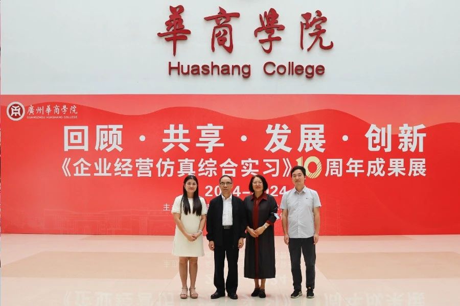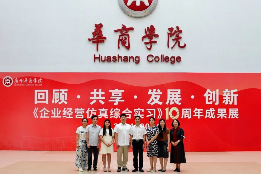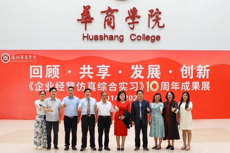 华商教育集团董事长廖榕就,学校总督学,党委书记陈玉欢,副校长刘少波、吕峻闽,学校顾问郭银华,广东财经大学国家级实验教学中心主任姚维保,副主任李立君,教学部部长陈韦伶,广东白云学院经管中心主任贺雪荣,伟德体育会计学院、管理学院、人工智能学院等院系领导及师生,共同参观了《企业经营仿真综合实习》课程10周年成果展,见证了课程发展建设的阶段性“成绩单”。