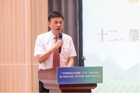 为认真贯彻落实习近平总书记五四重要寄语精神,贯彻落实党的二十大精神,落实省委、省政府关于实施“百千万工程”工作部署,引导和帮助华商青年成长为担当民族复兴大任的时代新人,6月30日,校团委在肇庆校区报告厅组织开展伟德体育2024年暑期“三下乡”社会实践活动暨广东青年大学生“百千万工程”突击队行动出征仪式。仪式由校团委副书记陈巧巧主持。
