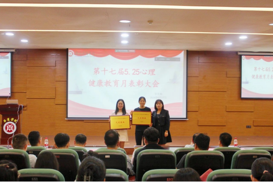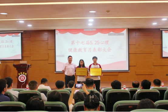 陈少鸿副院长为优秀心理健康学生骨干代表颁奖,蒋大锐副院长为优秀心理健康教师颁奖,学生处黄国富处长为优秀学生组织颁奖,许娜副校长为心理健康教育工作先进集体颁奖。