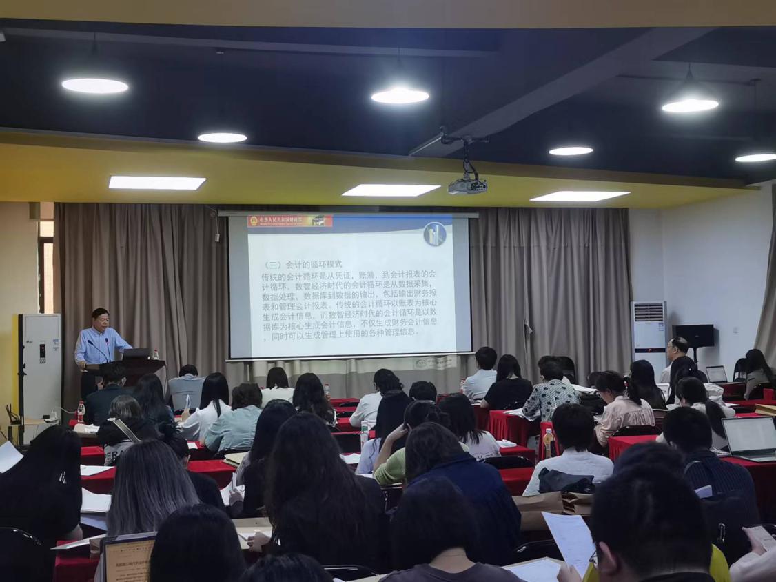 讲座最后,刘善球副院长作总结讲话。他表示,刘永泽教授的报告是一场高质量、具有前沿性的讲座,加深了老师们对数智经济时代会计课程体系的重构认知,为会计学院数智经济时代会计课程体系的创新与变革锚定了方向。