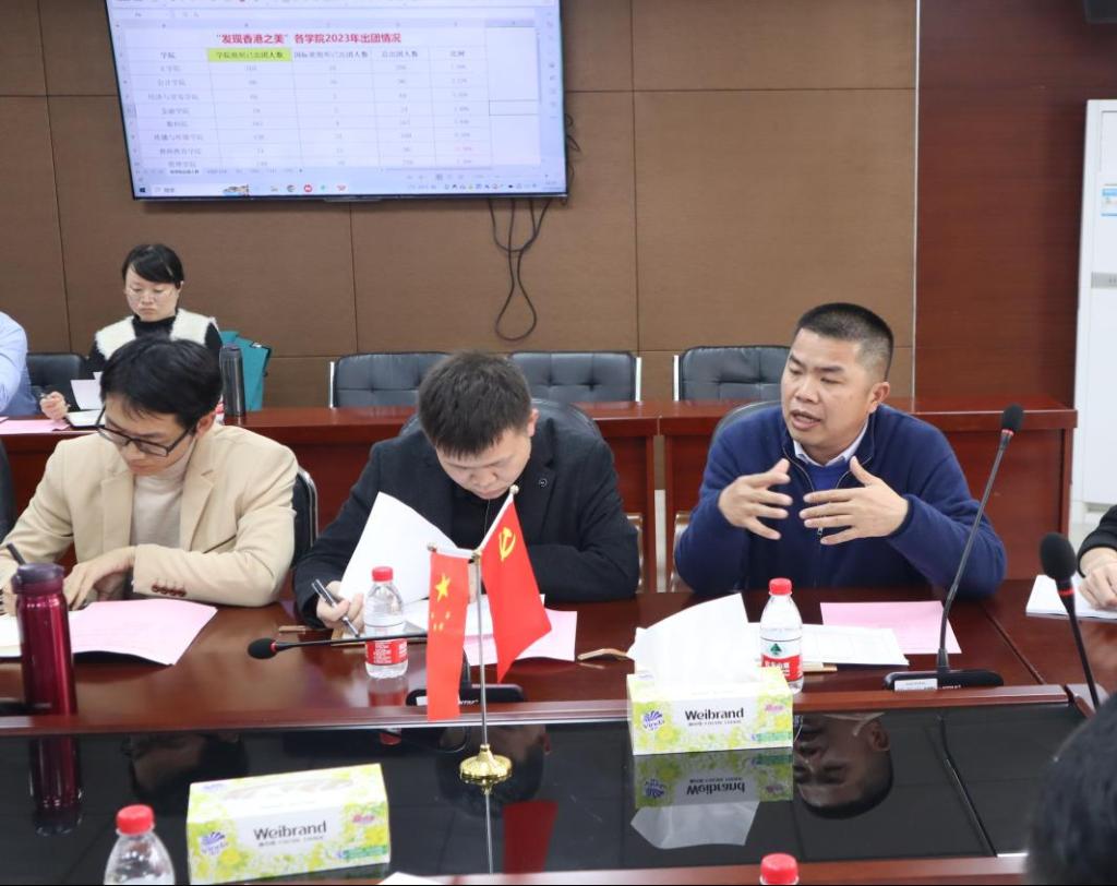 2024年3月5日,我校在华商学院广州校区行政楼513会议室顺利召开了“发现香港之美”研学专题研讨会。党委书记陈玉欢、副校长吕峻闽、校长助理、相关职能部门负责人、各二级学院学工书记参加了本次研学专题研讨会。会议由国际交流与合作处暨港澳台办主任王文忠主持。