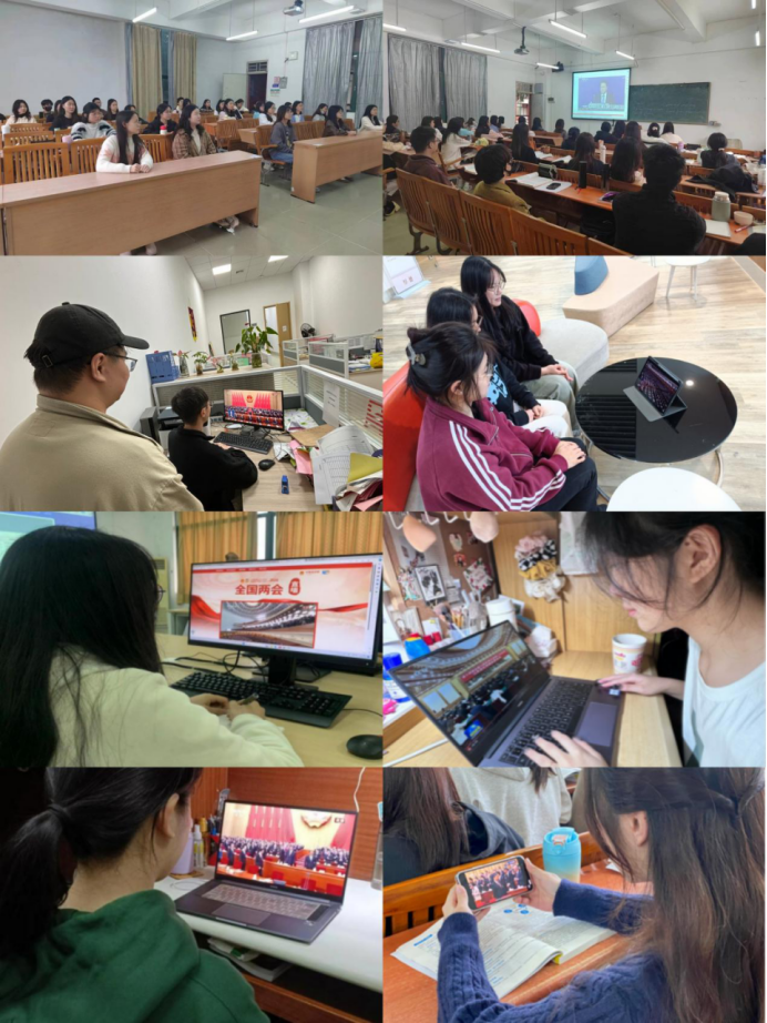 3月4日、5日,全国政协十四届二次会议、十四届全国人大二次会议分别在京开幕。伟德体育师生第一时间收听收看全国两会盛况,通过电视、网络、广播等渠道持续关注两会动态,认真学习政府工作报告,深入领会会议精神,并结合学习工作实际开展研讨交流,畅谈感想体会。