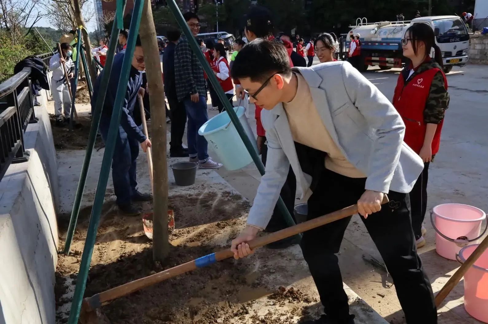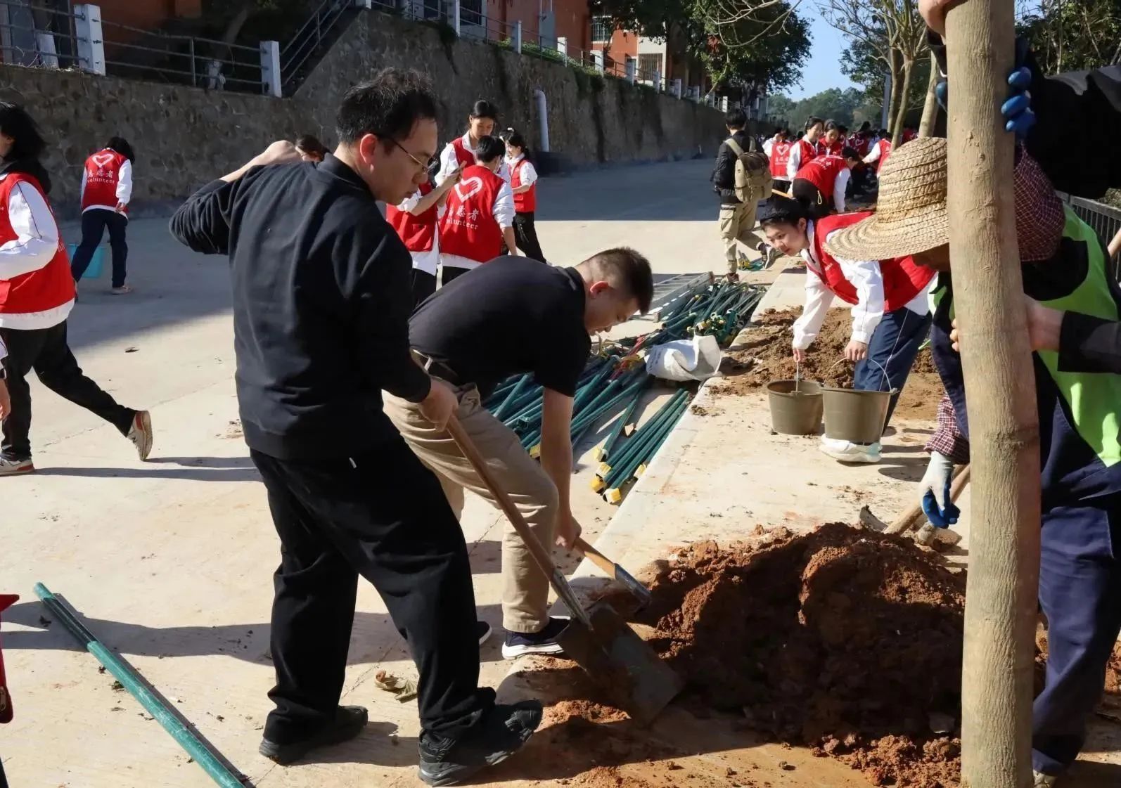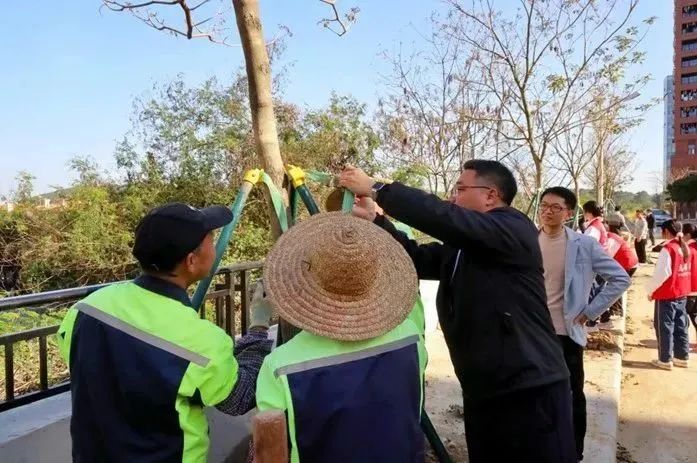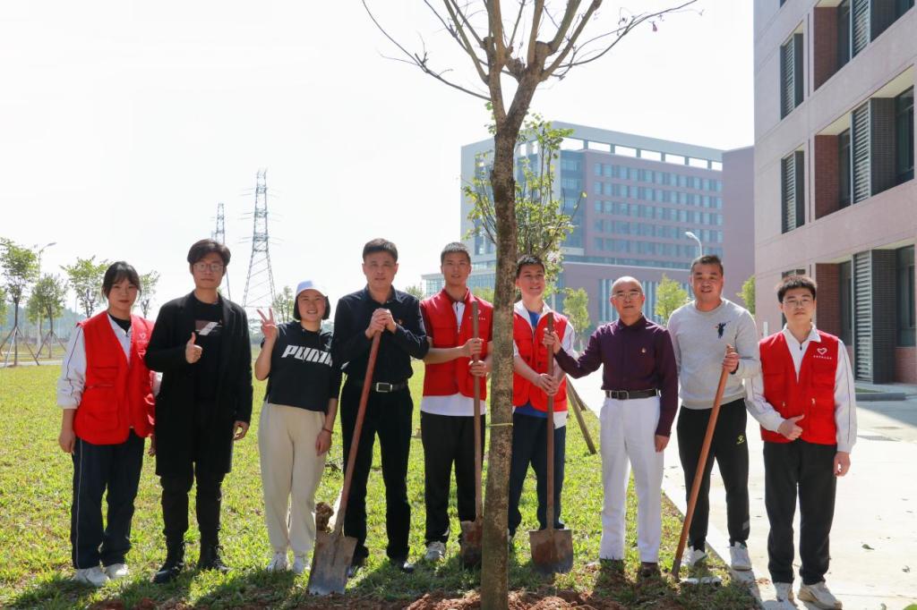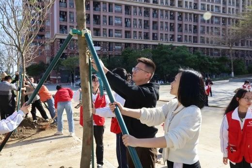 启动仪式后,各院校分别开展植树节活动。为引领华商青年在实践中践行绿色发展理念,助力绿美广东生态建设,伟德体育“绿美广东 青年先行”植树护绿活动在双校区同步进行。学校党委书记陈玉欢、副校长王卫平、校长助理黄伟新、肇庆校区党委书记苏宁、学校党委委员、各二级学院党团组织负责人、学工主任、学生会指导老师与志愿者、绿化工人一道,为华商校园再添新绿。