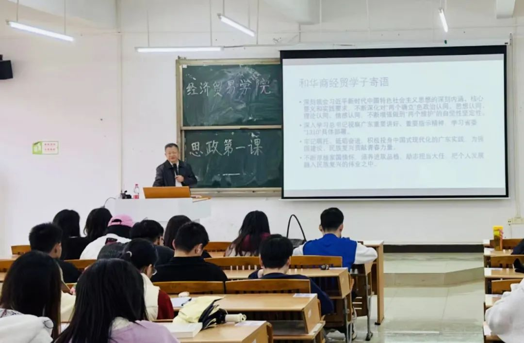 3月8日,经济贸易学院党委副书记宋元跃老师在肇庆校区8号楼109讲授以“起而行之,奋发有为”为主题的思政第一课,2022级、2023级学生共同参加此次课程。
