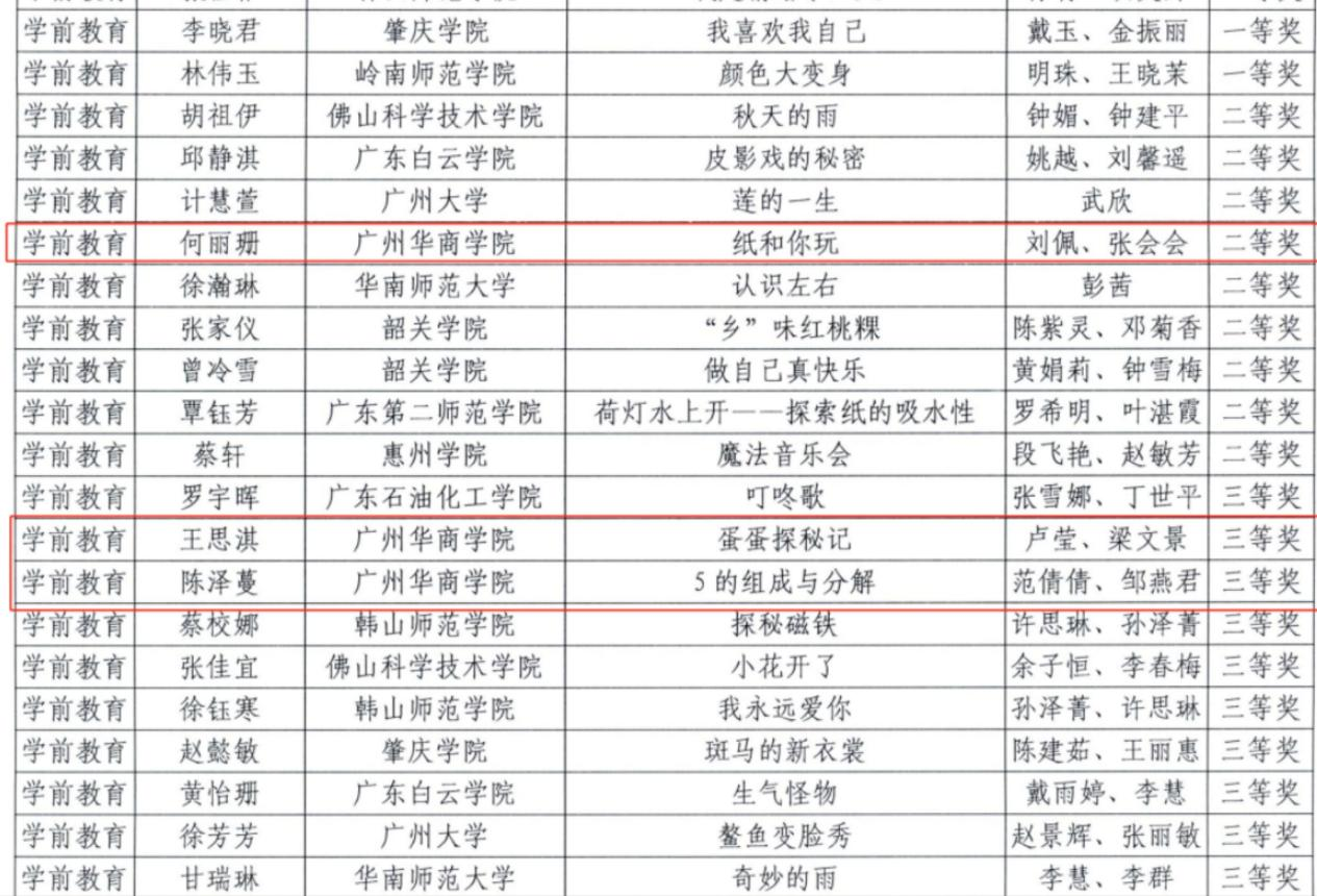 本次比赛,教师教育学院选派的4位选手表现突出,取得了1个二等奖、2个三等奖、1个优秀奖的优异成绩。其中,何丽珊同学获得二等奖,王思淇、陈泽蔓同学获得三等奖,张文滔同学获得优秀奖。