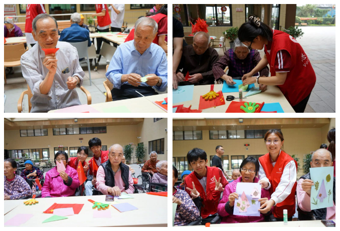 志愿者团队和老人们一起进行手工折纸艺术创作和绿美创意DIY植物标本的制作。在制作过程中,志愿者与老人们聊天交流,分享自己的大学生活,关心老人们的生活日常与身体状况,为他们带去温暖和爱。为社区建设出力,为绿美广东建设贡献出自己的力量。
