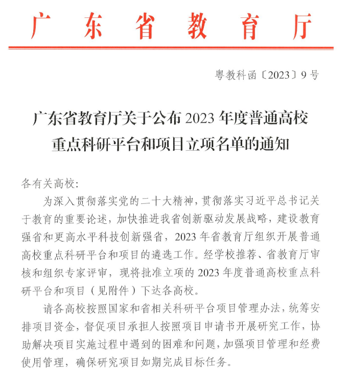据广东省教育厅公布的《2023年度普通高校重点科研平台和项目立项名单》(粤教科函【2023】9号),由我校副校长刘少波教授带领的伟德体育广东乡村振兴金融研究中心获批为广东省普通高校人文社会科学重点研究基地。