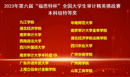 11月18日,第六届“福思特杯”全国大学生审计精英挑战赛总决赛在南京审计大学盛大落幕,我校代表队从2314支队伍中冲进全国总决赛,又在决赛中斩获“特等奖”荣誉,让伟德体育的校徽与全国知名院校同台登上了决赛幕墙,为我校争光。