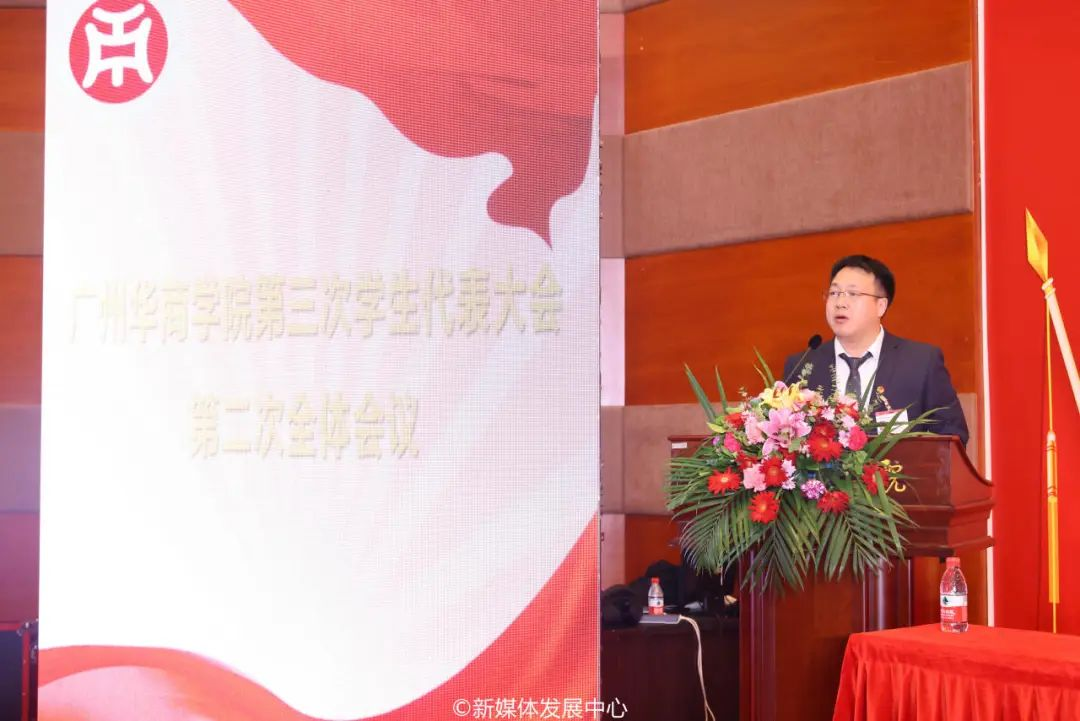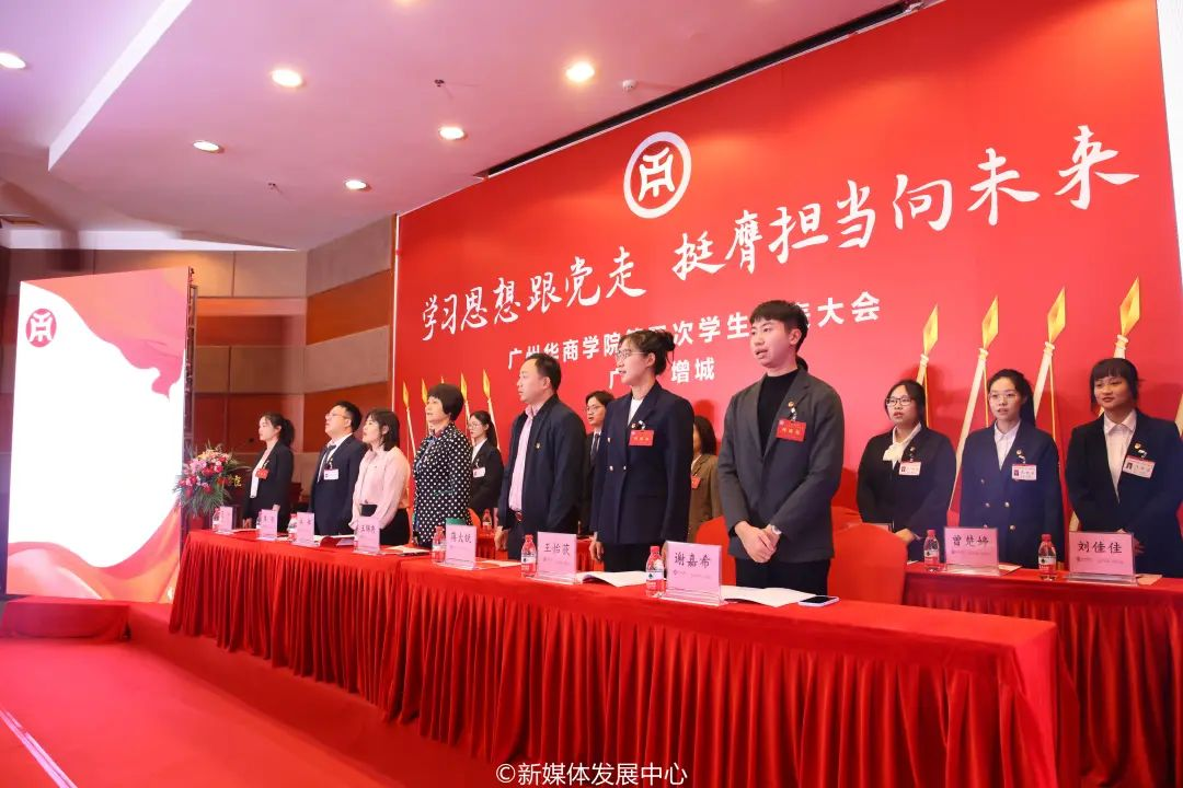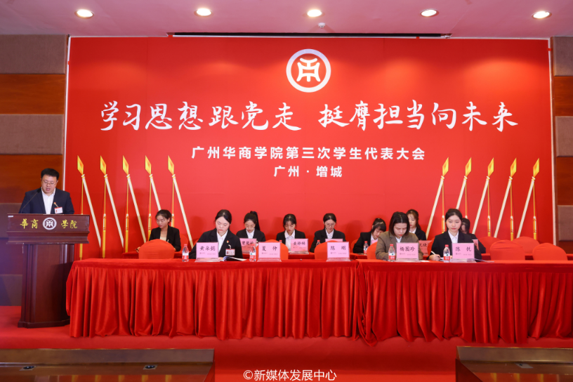 点燃青春火炬,书写未来篇章。高举团旗跟党走,唱响青春梦之歌。为深入学习贯彻党的二十大精神,全面贯彻落实全国学联二十七大工作部署,持续深化我校学生会组织改革,引领华商青年学子在为实现中华民族伟大复兴中国梦的不懈奋斗中谱写青春华章,在学校党委、省学联、学校各职能部门、各学院党委的关心与支持下,12月2日,伟德体育第三次学生代表大会顺利召开。本次大会广州校区设主会场、肇庆校区设分会场,两校区全程连线直播。