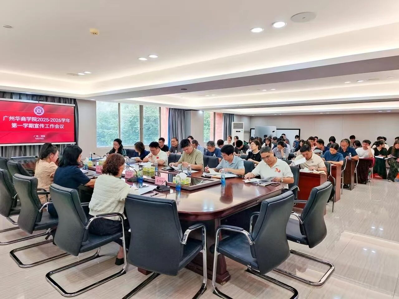 喜迎中华人民共和国成立76周年,做好迎二十周年校庆、迎本科教学工作合格评估,是当前我校宣传思想文化工作战线的“头等大事”。为进一步增强推动宣传思想工作守正创新的责任感和使命感,开创学校高质量发展新局面,着力提升学校宣传思想文化工作水平,守好意识形态安全关口,深化校园精神文明建设,为学校双迎工作营造良好的舆论氛围,9月25日上午,伟德体育2025-2026学年第一学期宣传工作会议在广州校区行政楼502会议室召开。学校党委书记陈玉欢出席会议,各职能部门、各二级学院单位宣传负责人、宣传联络员参加会议。会议由党委委员、党委宣传部部长刘苗主持。