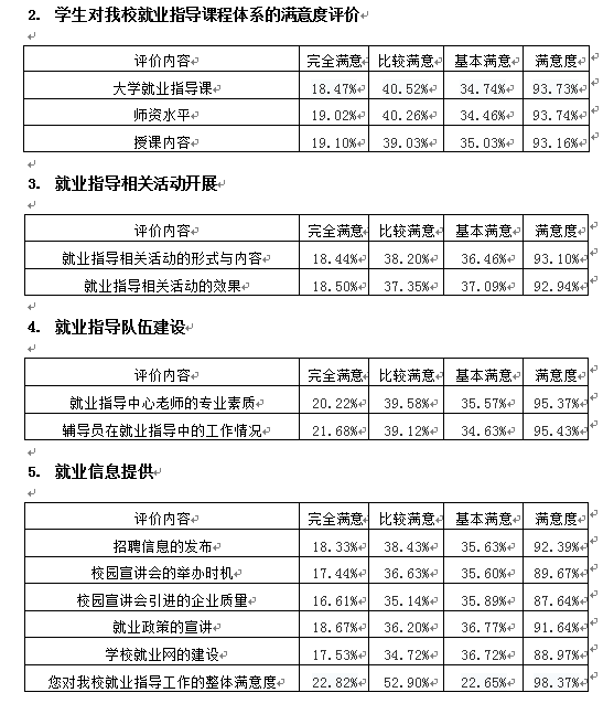 为建立毕业生就业对人才培养的反馈机制,我校从2010年起每年开展毕业生就业满意度调查,采取问卷调查为主,谈话走访为辅的方式,对毕业生及其用人单位进行调查,形成毕业生就业情况分析报告。2012年起开始增加开展就业指导工作满意度调查工作,形成毕业生对就业指导满意度分析报告。这些报告为我校的专业设置、教育教学改革、人才培养提供了有价值的信息,为学校在招生计划安排、专业设置、学科调整、教育教学改革、人才培养等方面提供参考依据。